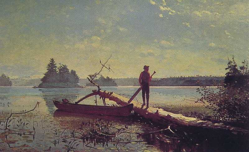 Das Gemälde "An Adirondack Lake" von Winslow Homer als hochwertige, handgemalte Ölgemälde-Replikation.