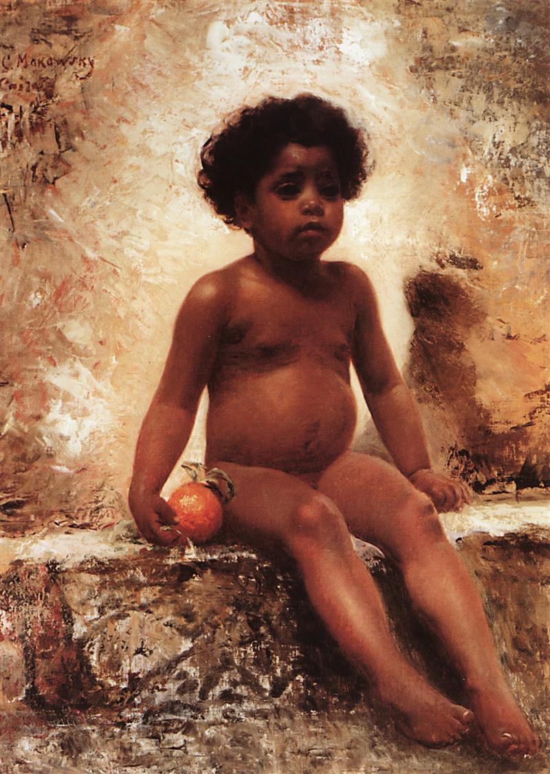 Das Gemälde "Arab Boy with an Orange" von Konstantin Egorovich Makovsky als hochwertige, handgemalte Ölgemälde-Replikation.