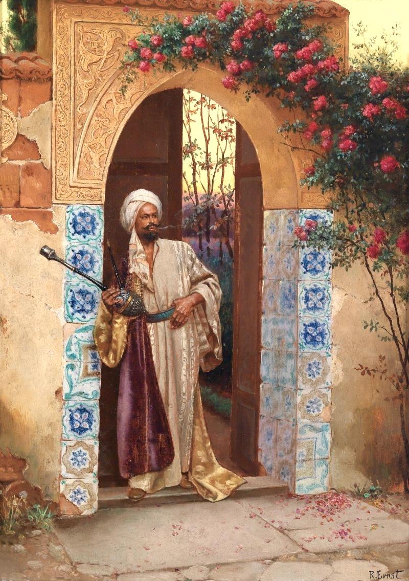 Das Gemälde "At the Entrance to the Palace Garden" von Rudolf Ernst als hochwertige, handgemalte Ölgemälde-Replikation.