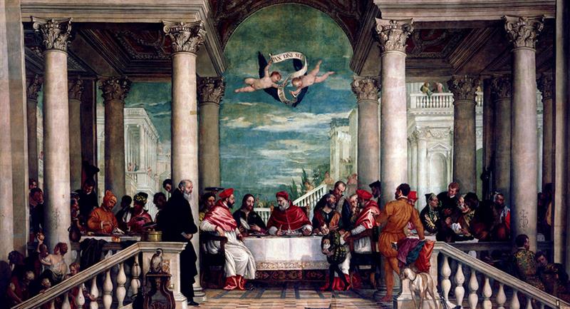 Das Gemälde "Banquet Scene - The Feast of Saint Gregory the Great" von Paolo Veronese als hochwertige, handgemalte Ölgemälde-Replikation.