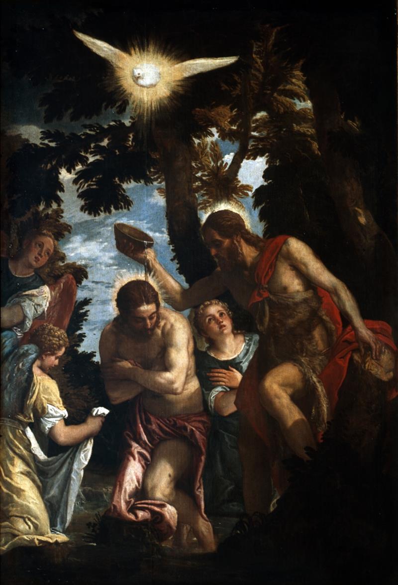 Das Gemälde "Baptism of Christ" von Paolo Veronese als hochwertige, handgemalte Ölgemälde-Replikation.