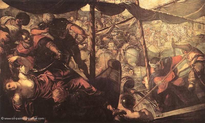 Das Gemälde "Battle between Turks and Christians" von Jacopo Robusti Tintoretto als hochwertige, handgemalte Ölgemälde-Replikation.