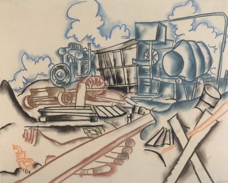 Das Gemälde "Baustelle" von Walter Ophey als hochwertige, handgemalte Ölgemälde-Replikation.