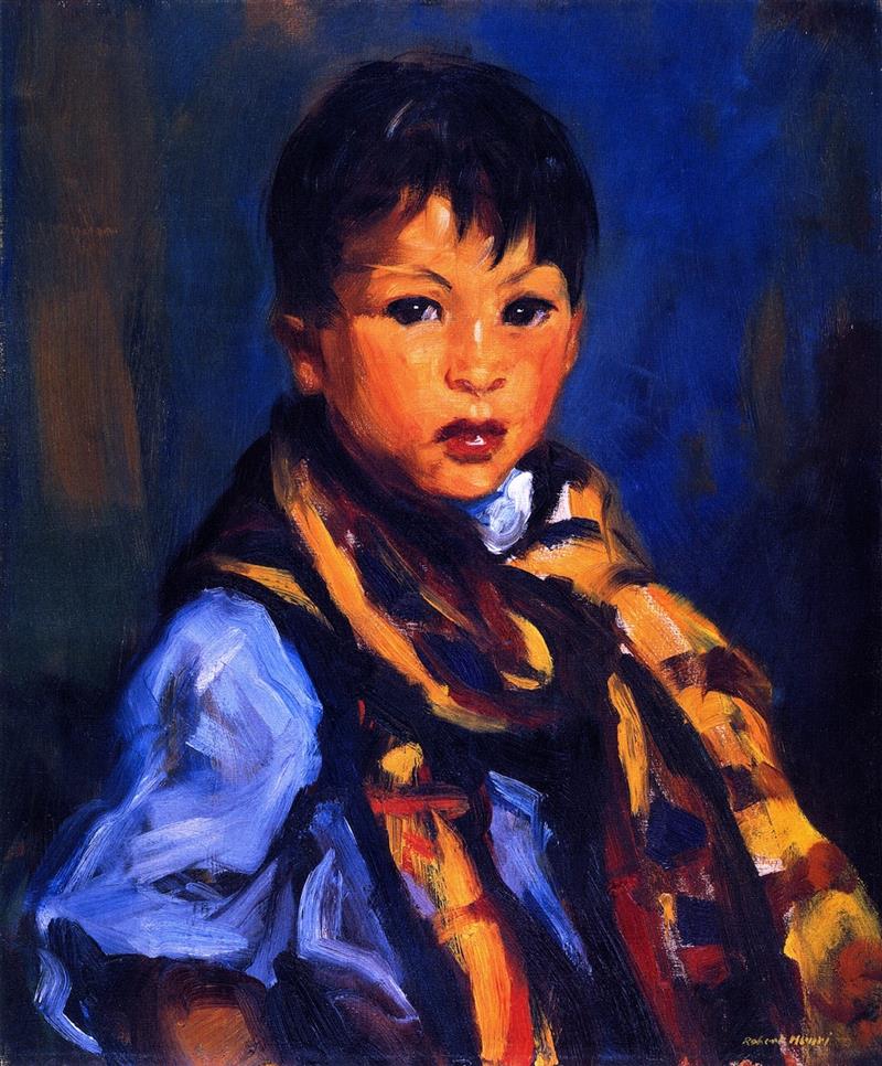 Das Gemälde "Boy with Plaid Scarf" von Robert Henri als hochwertige, handgemalte Ölgemälde-Replikation.