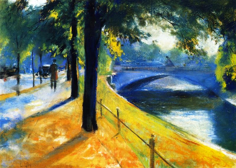Das Gemälde "Bridge over the Landwehr Canal" von Lesser Ury als hochwertige, handgemalte Ölgemälde-Replikation.