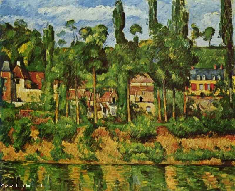 Das Gemälde "Chateau de Medan" von Paul Cezanne als hochwertige, handgemalte Ölgemälde-Replikation.