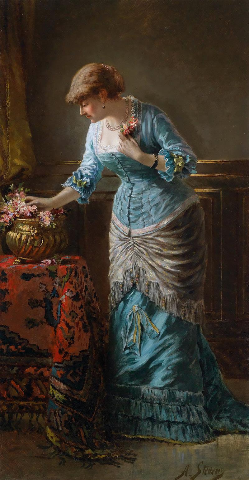 Das Gemälde "Choosing the Flowers" von Alfred Emile Stevens als hochwertige, handgemalte Ölgemälde-Replikation.