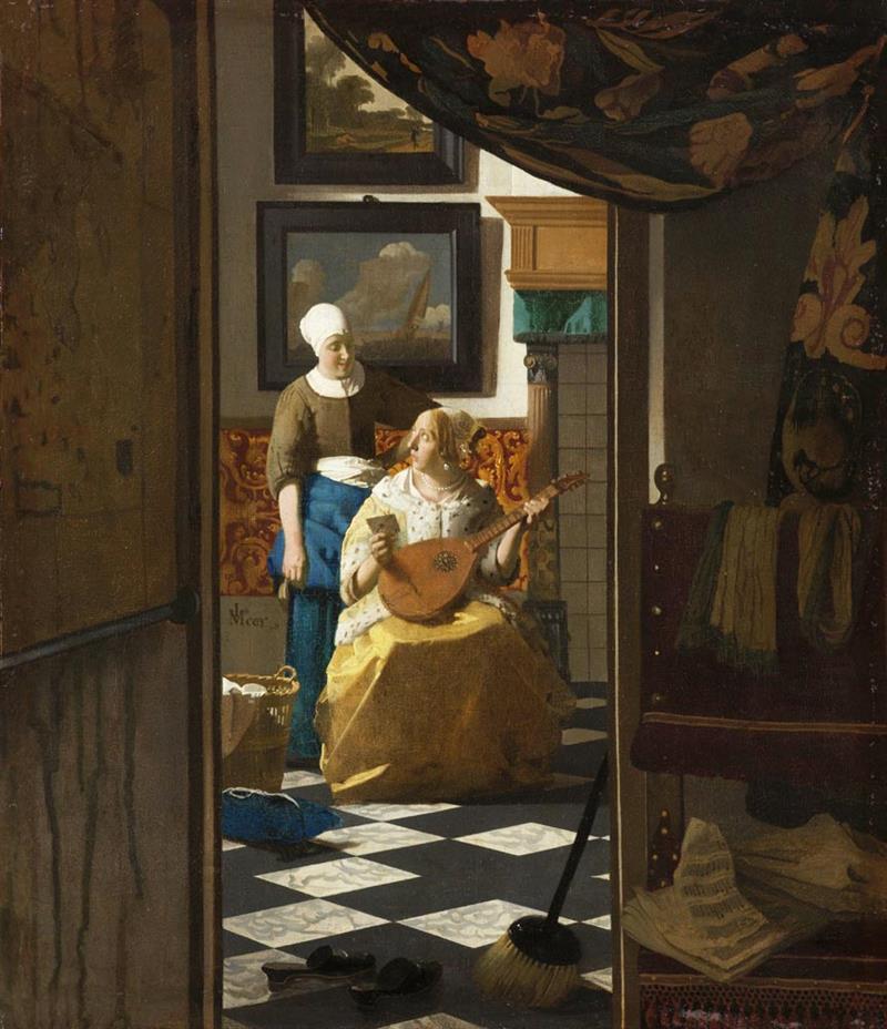 Das Gemälde "Der Liebesbrief" von Jan Vermeer van Delft als hochwertige, handgemalte Ölgemälde-Replikation.