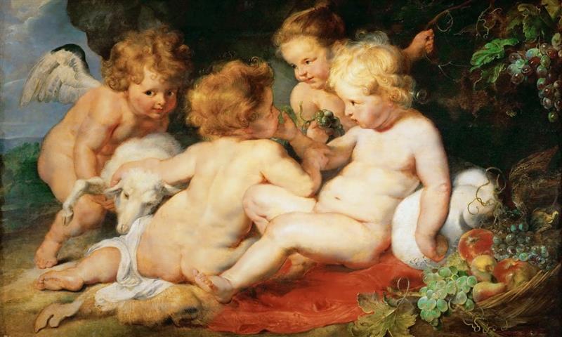 Der kleine Jesus mit dem Johannesknaben und zwei Engeln