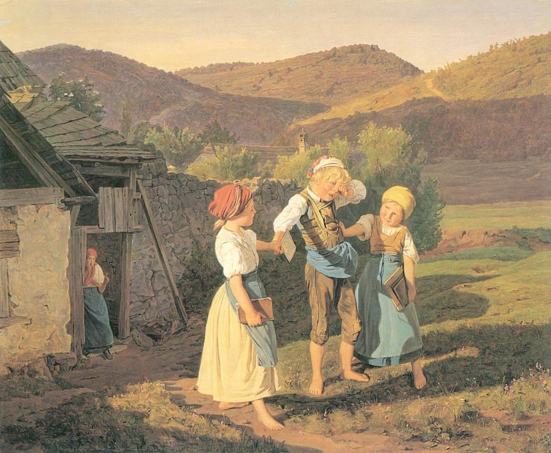Das Gemälde "Der widerspenstige Schulknabe" von Ferdinand Georg Waldmueller als hochwertige, handgemalte Ölgemälde-Replikation.