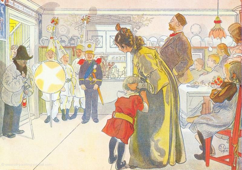Das Gemälde "Die Sternsinger bei Larssons" von Carl Larsson als hochwertige, handgemalte Ölgemälde-Replikation.