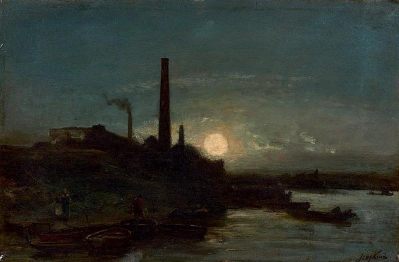 Das Gemälde "Edge of the Seine in the Moonlight" von Johan Barthold Jongkind als hochwertige, handgemalte Ölgemälde-Replikation.