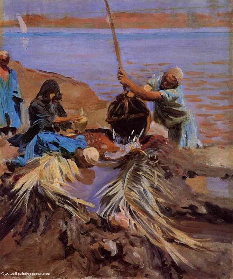 Das Gemälde "Egyptian Raising Water from the Nile" von John Singer Sargent als hochwertige, handgemalte Ölgemälde-Replikation.