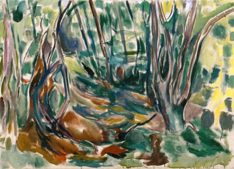 Das Gemälde "Elm Forest in Summer" von Edvard Munch als hochwertige, handgemalte Ölgemälde-Replikation.