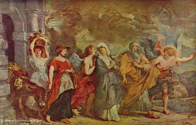 Das Gemälde "Flucht Lots" von Peter Paul Rubens als hochwertige, handgemalte Ölgemälde-Replikation.