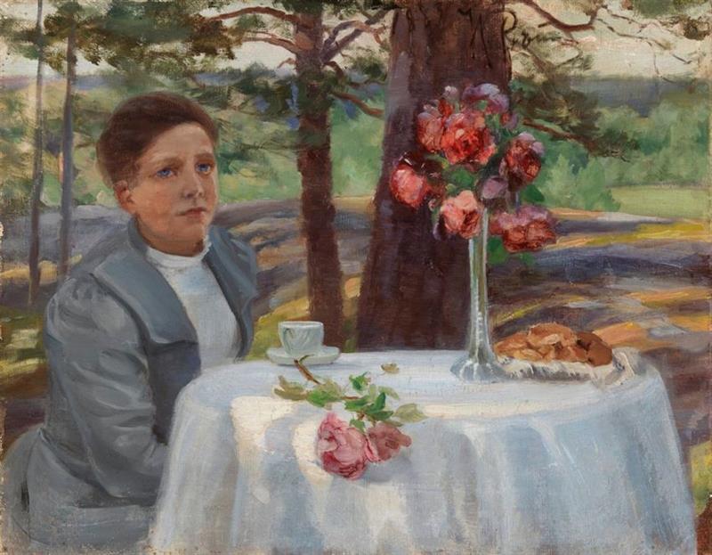 Das Gemälde "Girl at the Table" von Ilya Efimovich Repin als hochwertige, handgemalte Ölgemälde-Replikation.