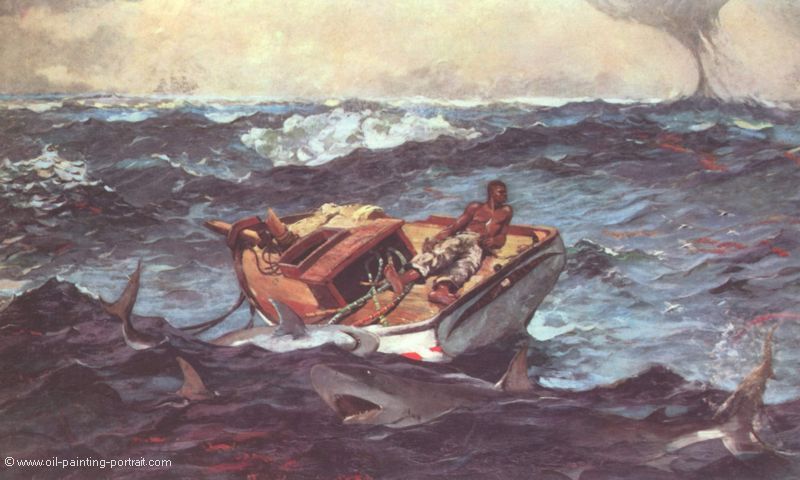 Das Gemälde "Golfstrom" von Winslow Homer als hochwertige, handgemalte Ölgemälde-Replikation.