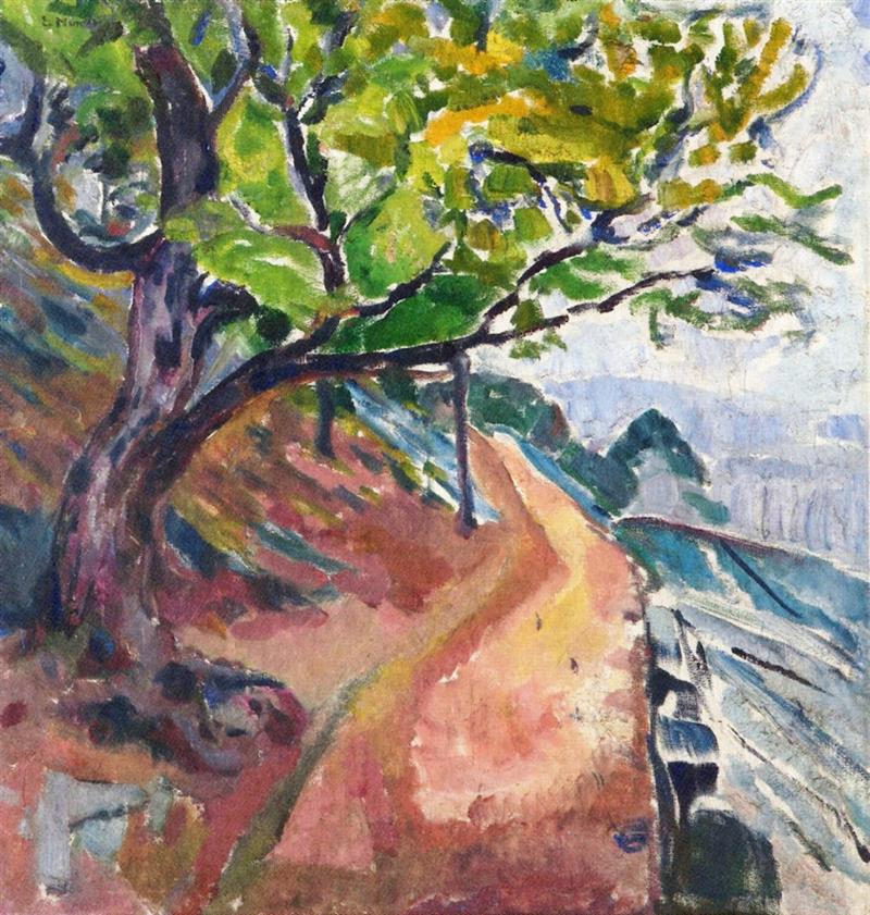 Das Gemälde "Green Tree by the Road" von Edvard Munch als hochwertige, handgemalte Ölgemälde-Replikation.