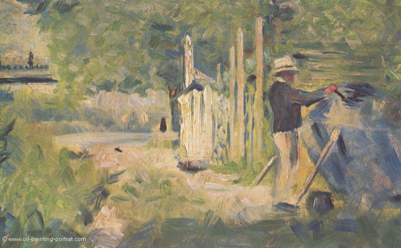Das Gemälde "Homme peignant son bateau" von Georges Seurat als hochwertige, handgemalte Ölgemälde-Replikation.