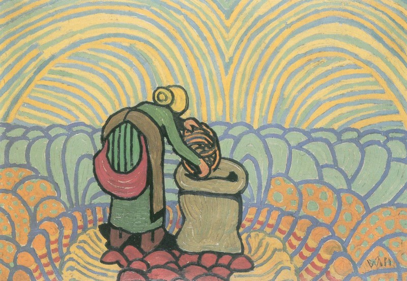 Das Gemälde "Kartoffelernte" von Wilhelm Morgner als hochwertige, handgemalte Ölgemälde-Replikation.