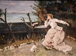 Alfred Emile Stevens  - Bilder Gemälde - Evening by the Sea