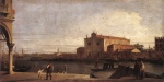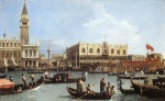 Canaletto, bekommt durch die Mitarbeit bei seinem Vater Bernardo Canal wichtige Impulse für seine landschaftlich und architektonisch genauen Stadtansichten. Bevor er zur Vedutenmalerei übergeht, entstehen Capricci von Venedig. Der Maler, der Zeit seines Lebens über Mäzene verfügt, arbeitet ab 1730 neben ansässigen, adeligen Auftraggebern auch für Reisende der Grand Tour, die von Venedig als überaus wichtige Station dieser Bildungsreise eine Erinnerung mit in ihr Heimatland nehmen wollen. Aufgrund mangelnder Aufträge, in Folge des Österreichischen Erbfolgekrieges, reist Canaletto im Jahr 1746 für 10 Jahre nach England, wo er vermehrt Zeichnungen und Radierungen von Londoner Stadtansichten fertigt. Der Künstler, der sehr genaue Skizzen anfertigt, um seine Gemälde möglichst Detailgetreu erscheinen zu lassen, wird schon zu Lebzeiten sehr geschätzt, was die hohe Zahl der nach seinen Werken angefertigten Kopien belegt. |