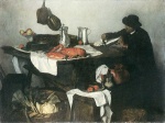 Das Leben Carl Schuch´s ist durch Unstetigkeit und Wanderschaft geprägt, so reist er bereits mit zwanzig Jahren für einige Jahre durch Italien. Während eines Aufenthaltes in München lernt er den Maler Wilhelm Trübner kennen, der zum Kreis um Wilhelm Leibl gehört, welcher für die malerische Entwicklung von Schuch sehr prägend wird. Neben Trübner gibt es einige Malerkollegen, wie den Landschaftsmaler Ludwig Halauska, von dem sich Schuch für einige Zeit in Wien ausbilden lässt, und den Grafiker Albert Lang sowie seinen späteren Biografen Karl Hagemeister, deren Wege sich während Schuchs zahlreicher Reisen immer wieder kreuzen, bzw. die zu längeren Reisegefährten werden. Durch seine Abstammung aus einer wohlsituierten Familie ist Carl Schuch zeit seines Lebens finanziell unabhängig und dadurch frei seinen künstlerischen Neigungen zu folgen, welche ihn auch nach Paris bringen und die Möglichkeit eröffnen, die Arbeiten Gustave Courbet´s kennenzulernen, welche den realistischen Stil seiner Stillleben stark beeinflussen.