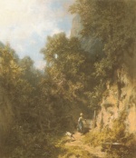 Carl Spitzweg  - Bilder Gemälde - Mädchen in der Waldschlucht