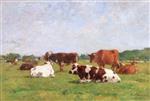 Eugene Boudin  - Bilder Gemälde - Cows resting in a Meadow
