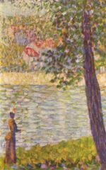 Georges Seurat, der sein Studium an der École des Beaux-Arts absolviert, beschäftigt sich ausgiebig mit den klassizistischen Werken von Ingres, der besonders den festen Konturen und der Linie große Bedeutung beimisst. Im Laufe seines sehr kurzen Lebens erfährt Georges Seurat, dass, ähnlich der Rasterung einer Fotographie, viele kleine Farbpunkte aus einiger Entfernung gesehen im Auge des Betrachters zu einer Fläche verschwimmen. Aus dieser Beobachtung heraus entwickelt Seurat eine Maltechnik, die heute als Pointillismus bekannt ist und mit der er versucht die klassizistische Stränge in eine pointillistisch – flirrende Farbigkeit zu übertragen. Nachdem sein erstes pointillistisches Gemälde „Badeplatz in Asnières“ 1883 vom Salon abgelehnt wird, gelingt es ihm seine Bilder im Rahmen der impressionistischen Ausstellungen der damals noch sehr abgeneigten Öffentlichkeit zu zeigen.