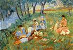 Henri Lebasque  - Bilder Gemälde - Les Andelys, The Lebasque Family by the Water