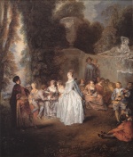 Jean Antoine Watteau  - Bilder Gemälde - Hochzeitsgesellschaft im Freien