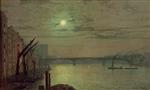 John Atkinson Grimshaw  - Bilder Gemälde - The Thames by Moonlight with Southwark Bridge
