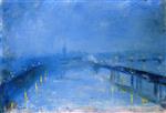 Lesser Ury  - Bilder Gemälde - Thames Bridges in the Twilight