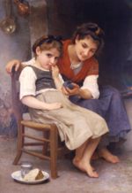 William Adolphe Bouguereau studiert, nach einigen Jahren Ausbildung in Bordeaux und dem eigenständigen Studium der Natur, an der École des Beaux Arts in Paris. Seine Portraitdarstellungen sind bald sehr beliebt und bringen ihm mehrere Preise und Medaillen im Pariser Salon ein. Drei Jahre nach der französischen Revolution bekommt er einen Romaufenthalt ermöglicht, was in akademischen Malerkreisen fast schon zur Grundlage der Ausbildung gehört, da der Künstler die Möglichkeit des direkten Kopierens künstlerischer Vorbilder wie Raffael und Michelangelo eröffnet bekommt. Von diesen Meistern beeinflusst, beginnt William Bouguereau Gemälde mit mythologischem, allegorischem Inhalt zu malen. Seine Figuren beeindrucken das Pariser Publikum durch ihr liebreizendes, idealisiertes Äußeres. Mit dem Gemälde „Die Geburt der Venus“ rücken vermehrt Aktdarstellungen in den Blickpunkt des Künstlers, der für sein harmonisches Farbzusammenspiel, die anspruchsvolle Komposition und die anfänglich noch recht geschraubte Körperhaltung seiner Figuren hoch gelobt wird. Neben diesem großen Thema, das allerdings auch Kritiker dazu verleitet, seine nackten Frauen als reine Pin Up Girls und Porzellanpüppchen zu betiteln, widmet sich Bouguereau mit großer Begeisterung der Darstellung von mythologischen Kindern, wie „Psyche und Amor“ die, wenn man genauer hinsieht, in keinster Weise nach einem realen Vorbild gemalt sein können. |