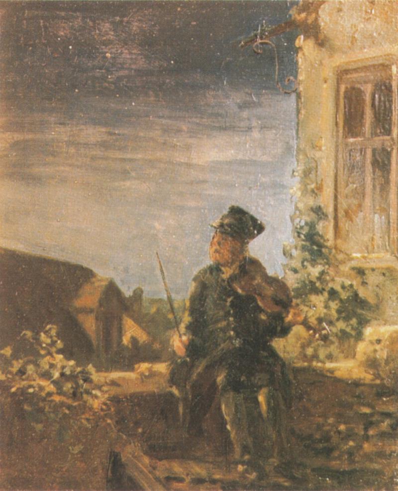 Das Gemälde "Mondscheingeiger" von Carl Spitzweg als hochwertige, handgemalte Ölgemälde-Replikation.
