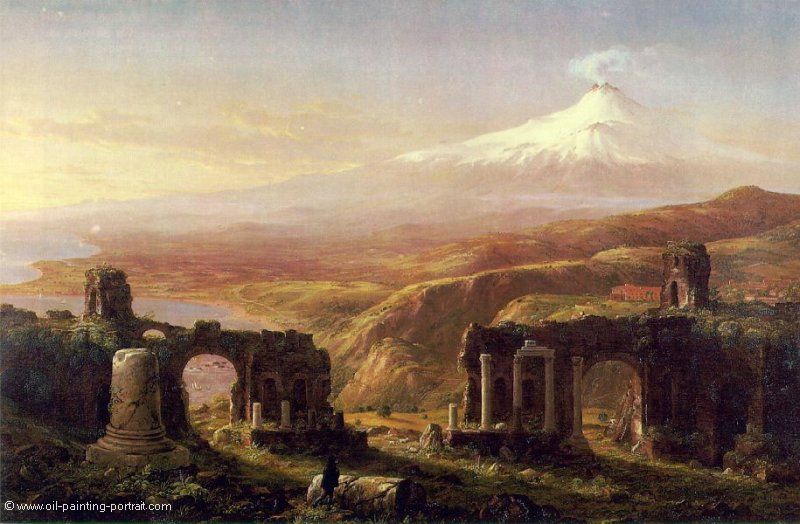 Das Gemälde "Mount Aetna from Taormina" von Thomas Cole als hochwertige, handgemalte Ölgemälde-Replikation.