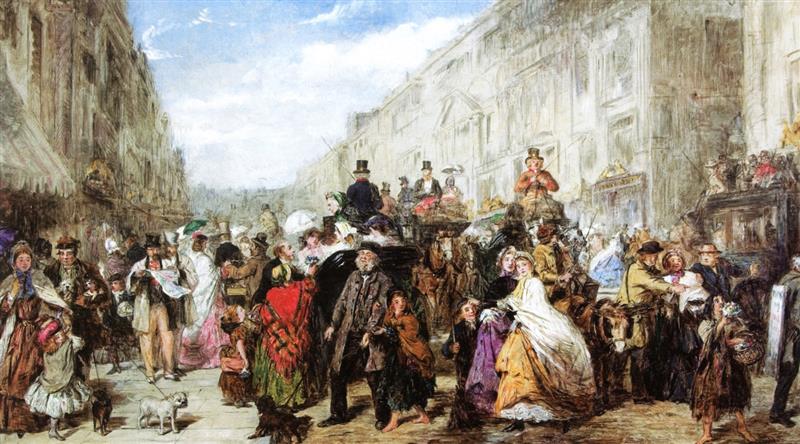 Das Gemälde "Noon - Regent Street" von William Powell Frith als hochwertige, handgemalte Ölgemälde-Replikation.