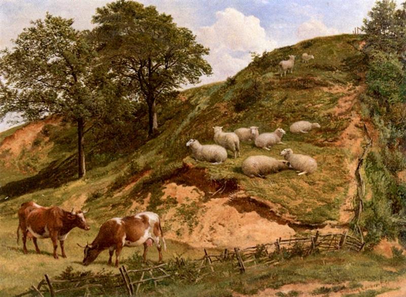 Das Gemälde "On a Kentish Hillside" von Thomas Sidney Cooper als hochwertige, handgemalte Ölgemälde-Replikation.
