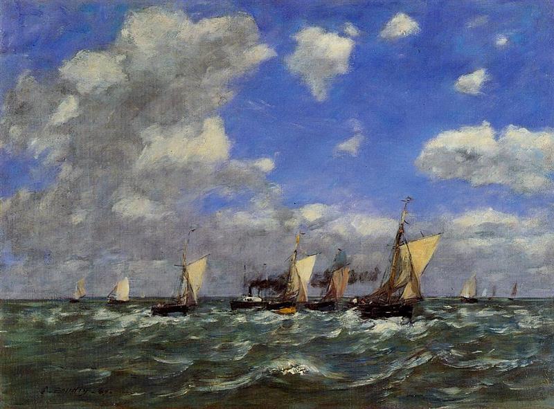 Das Gemälde "Open Sea" von Eugene Boudin als hochwertige, handgemalte Ölgemälde-Replikation.