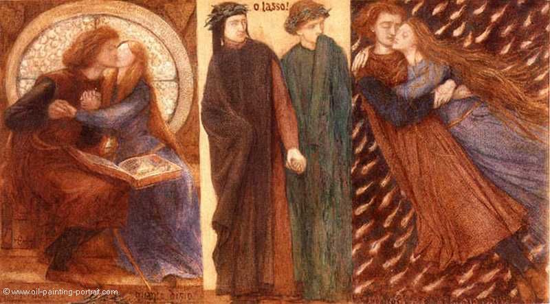 Das Gemälde "Paolo and Francesca" von Dante Gabriel Rossetti als hochwertige, handgemalte Ölgemälde-Replikation.