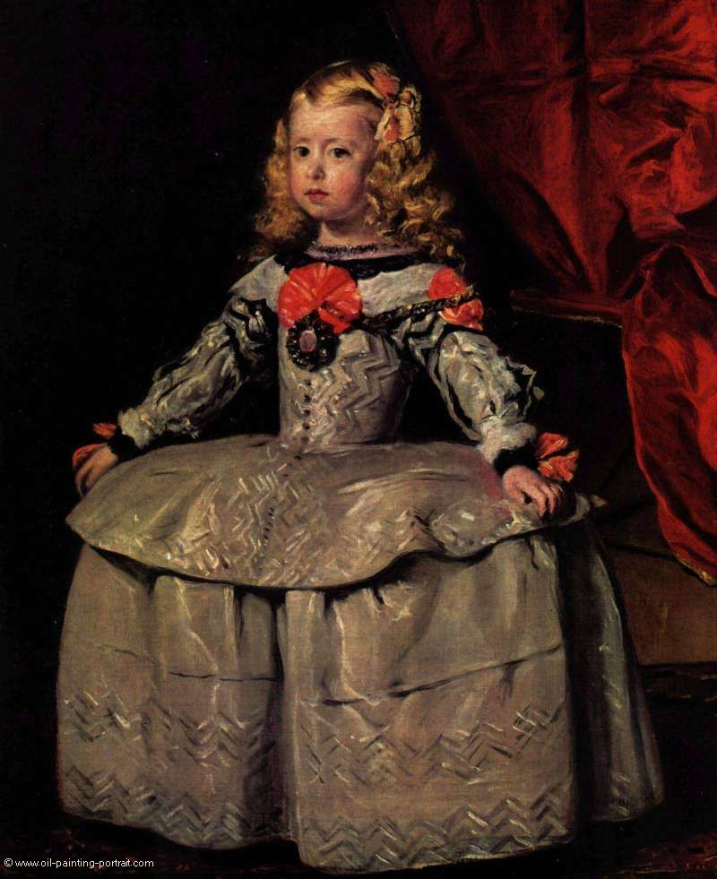 Das Gemälde "Portrait der Infantin Margareta im Alter von etwa drei Jahren" von Diego Velazquez als hochwertige, handgemalte Ölgemälde-Replikation.