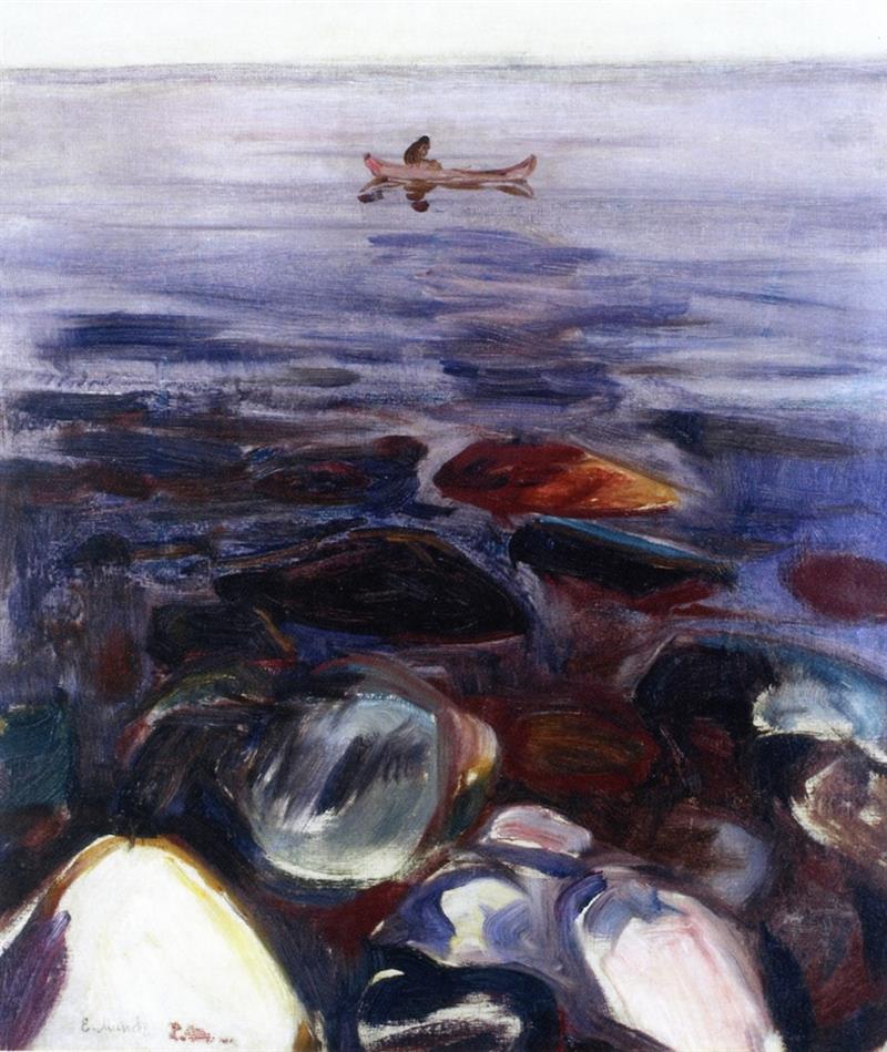 Das Gemälde "Rowing Boat on the Sea" von Edvard Munch als hochwertige, handgemalte Ölgemälde-Replikation.