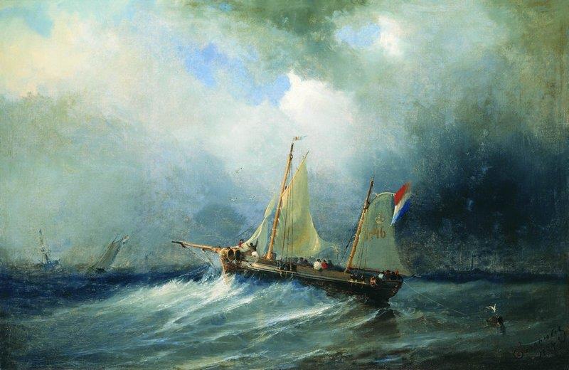 Das Gemälde "Sailing Boat at Sea" von Alexei Petrowitsch Bogoljubow als hochwertige, handgemalte Ölgemälde-Replikation.