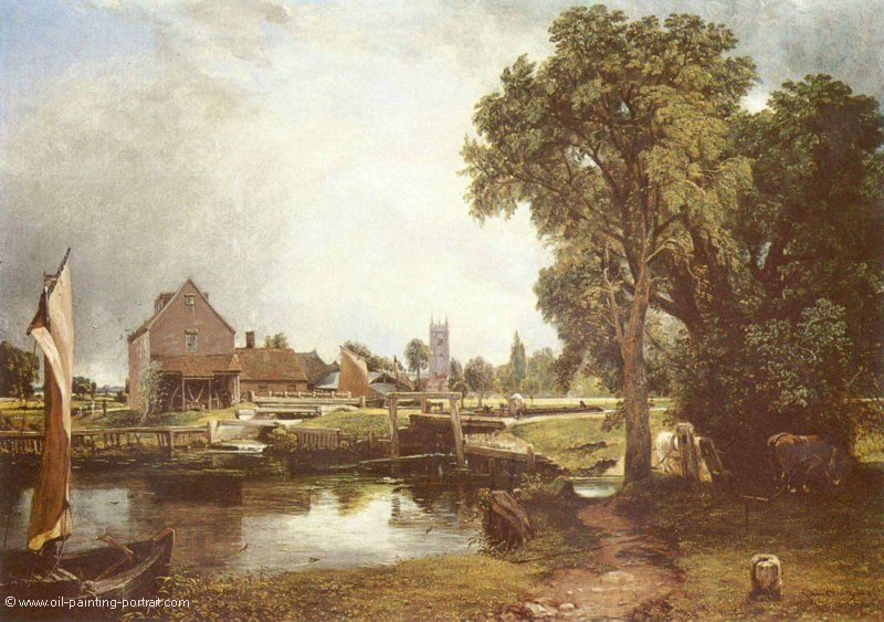 Das Gemälde "Schleuse und Mühle in Dedham" von John Constable als hochwertige, handgemalte Ölgemälde-Replikation.