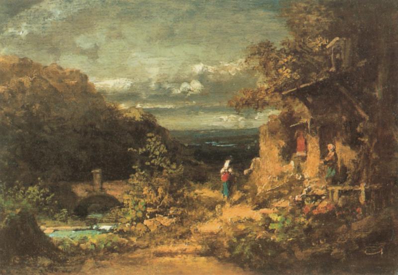 Das Gemälde "Sennerin und Einsiedler" von Carl Spitzweg als hochwertige, handgemalte Ölgemälde-Replikation.