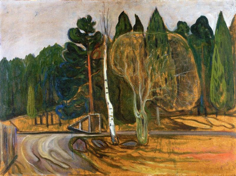Das Gemälde "Spring Landscape with Snow Plough" von Edvard Munch als hochwertige, handgemalte Ölgemälde-Replikation.