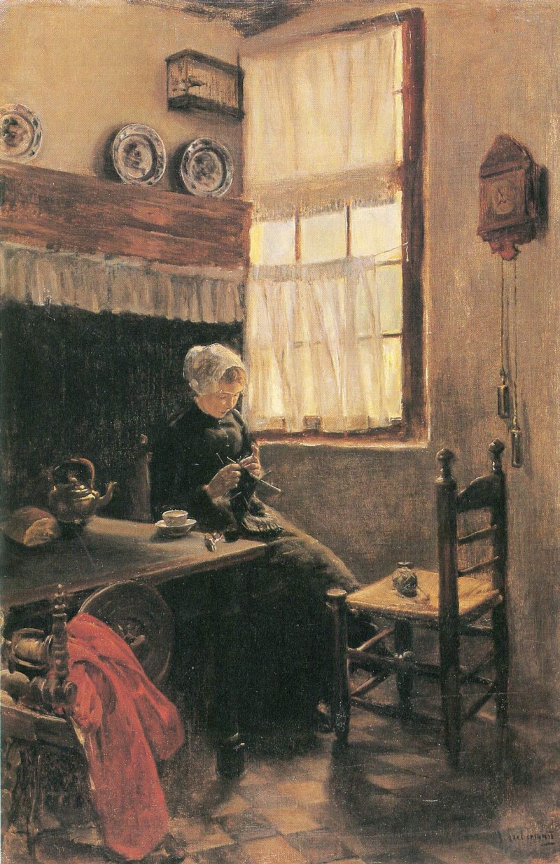 Das Gemälde "Stille Arbeit" von Max Liebermann als hochwertige, handgemalte Ölgemälde-Replikation.