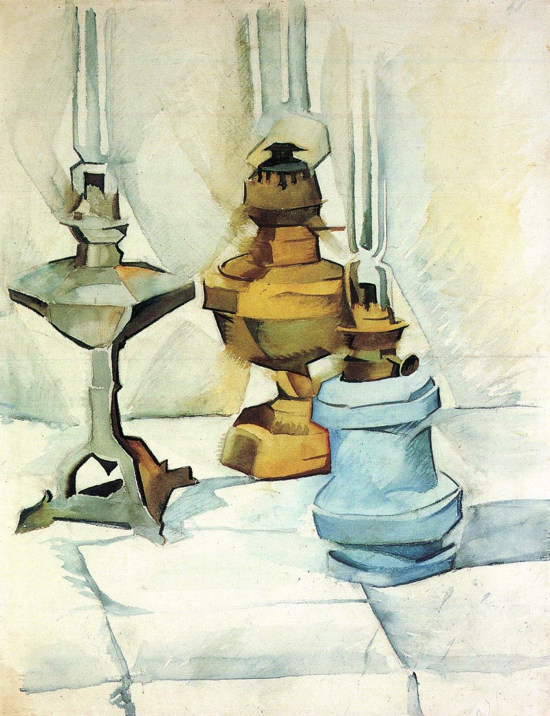 Das Gemälde "Stillleben mit drei Lampen" von Juan Gris als hochwertige, handgemalte Ölgemälde-Replikation.