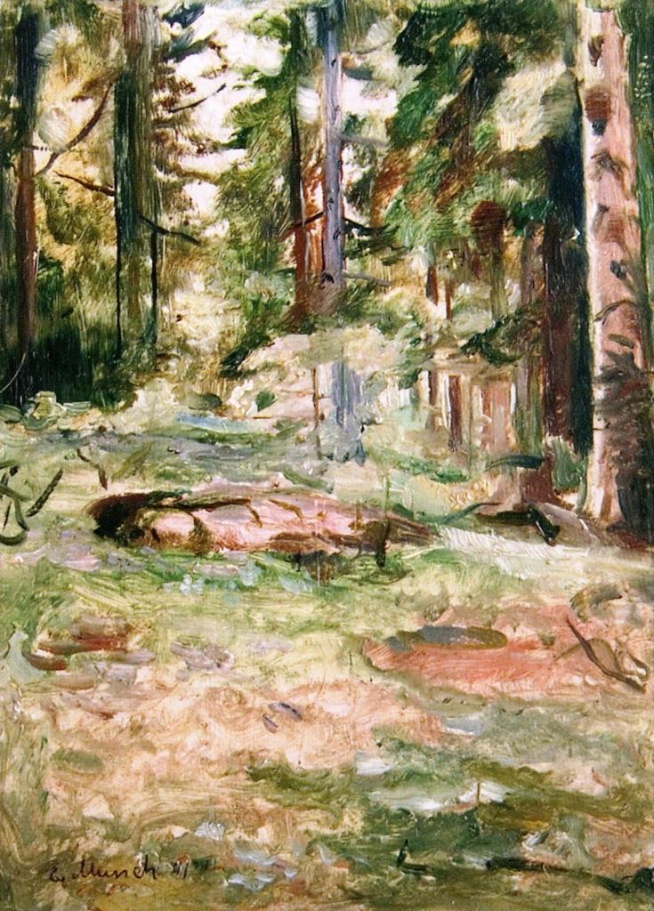 Das Gemälde "Summer Day in the Forest" von Edvard Munch als hochwertige, handgemalte Ölgemälde-Replikation.